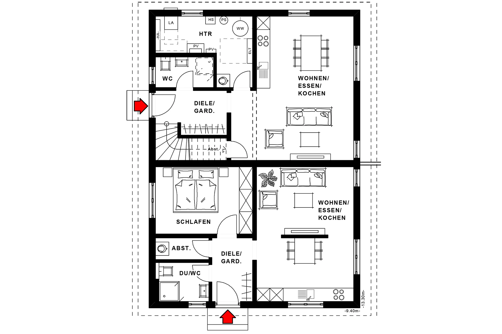 - mit Wärmepumpe und Fußbodenheizung, inkl. kontrollierter Be-/Entlüftung mit Wärmerückgewinnung