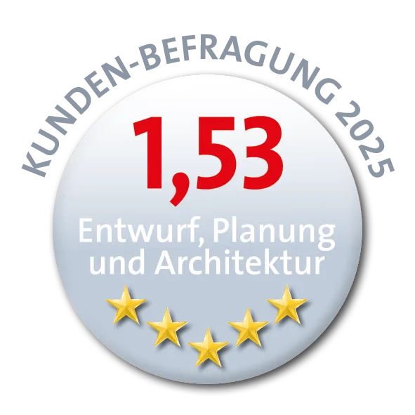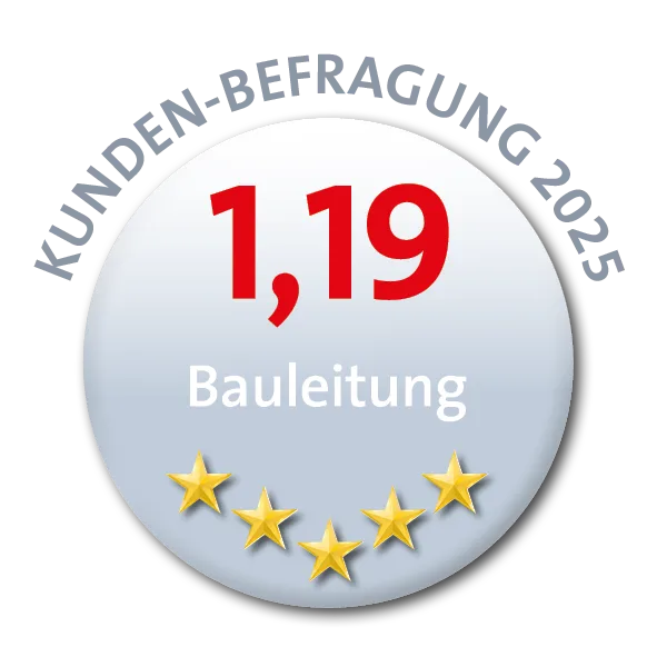 Für das Jahr 2025 erreichten wir mit einer Durchschnittsnote von 1,56 (Schulnotenlogik) erneut ein sehr gutes Ergebnis bei unseren regelmäßigen Umfragen zur Kundenzufriedenheit. Mit Bestnoten bewerteten unsere Bauherren 2025 die Qualität der Fachberatung (Note: 1,20), unsere Entwurfsplanung (Note: 1,53) sowie unsere Bauleitung (Note: 1,19).